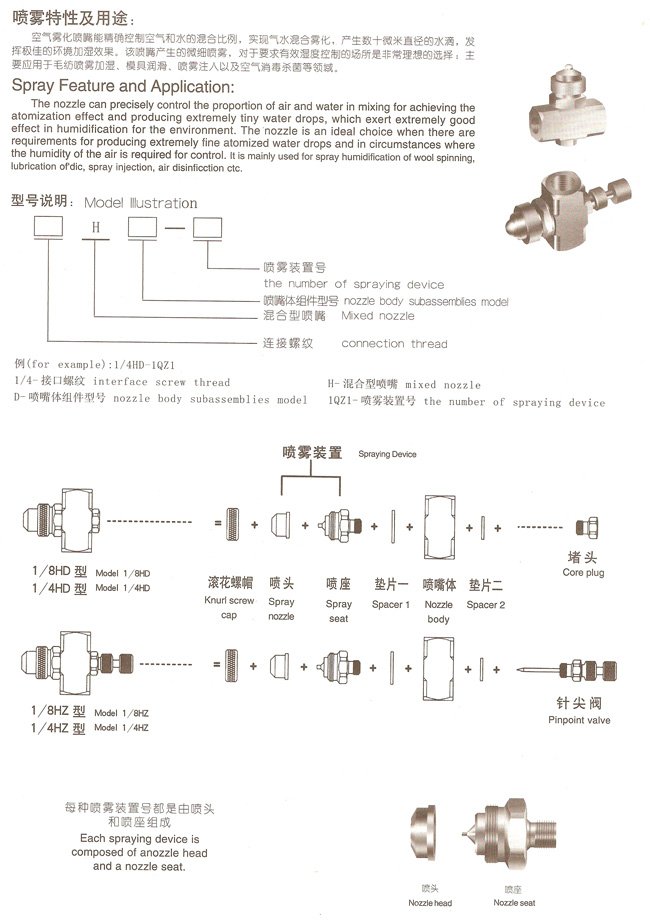 Mixed Atomizing Nozzles   HZQZ1(1-2) KZ(3) B1Z2(45) B3(67) L(89)